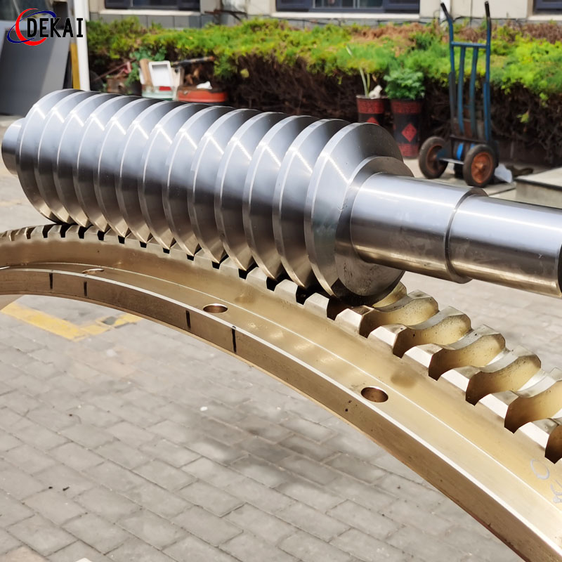 分度精度高,側隙可調整至0.01~0.03Mmm;齒面接觸穩(wěn),不會改變中心距。調整標準,方便可靠。裝配靈活,裝配時,用調整環(huán)來獲得合適的嚙合側隙。使用中如果因為磨損導致傳動間隙增大,只要調整一下蝸桿的軸向位置,可以使蝸桿蝸輪傳動副恢復到原來的精度,不需要更換新的蝸桿,蝸輪,比較實用。蝸桿材質采用40Cr,42CrMo、38CrMoAl合金鋼。蝸桿采用錫青銅ZCuSn10Pb1離心澆鑄,具有高強度耐磨性。