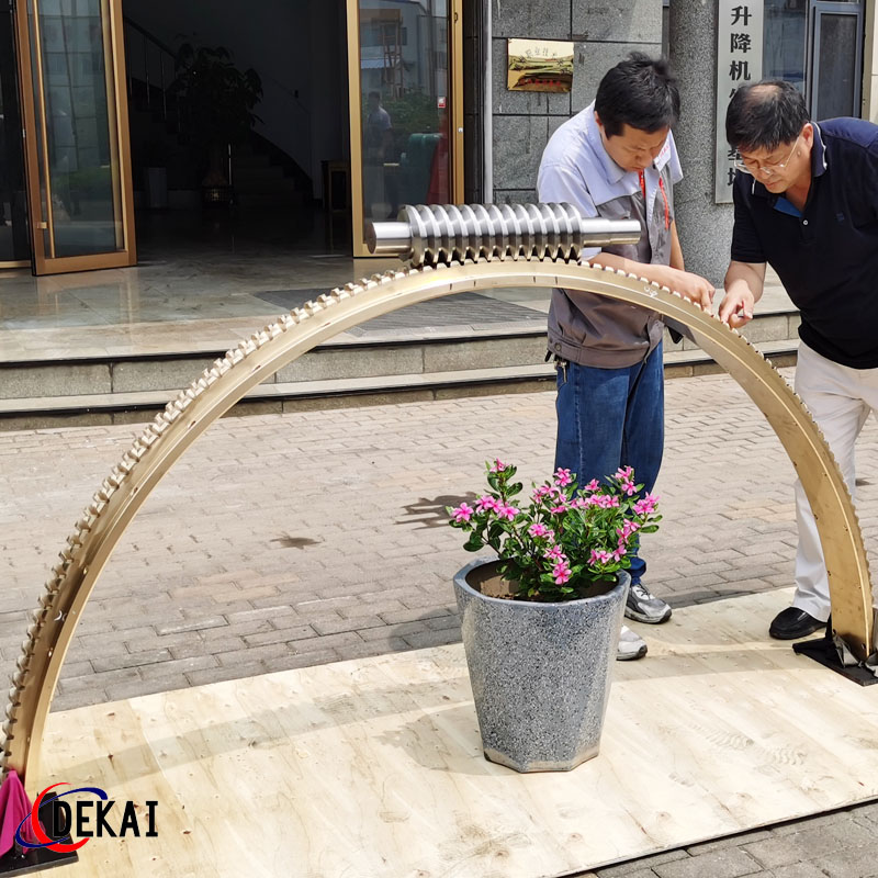 德州德凱減速傳動機械有限公司采用雙蝸桿對消隙原理開發(fā)生產的精密蝸輪蝸桿副,主要用于大型機床工作臺的驅動,高精密分割器等無間隙圓周運動精確定位場合。該蝸輪副中心距最大可做到2000mm,單節(jié)速比可做到1-365同時不產生回程間隙。