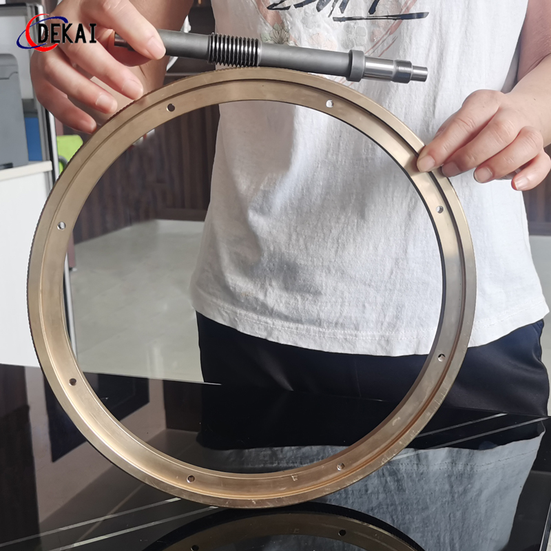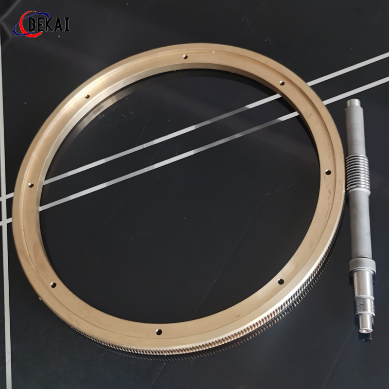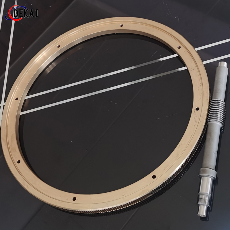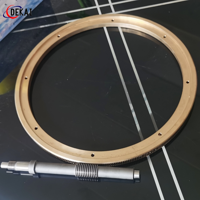 蝸輪系統(tǒng):材質(zhì):蝸輪特殊高強力鋁青銅合金;蝸桿:38CrMoAl合金鋼,正常化后滲碳HRC60以上。